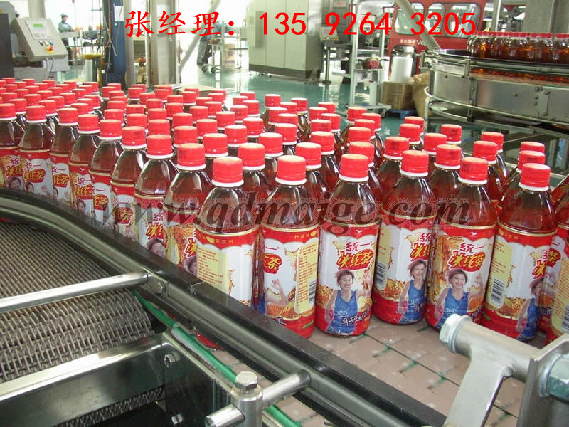 (7)灌裝:調(diào)配好的茶湯原料加熱到90~95℃,趁熱灌裝,然后沖氮.密封,若采用無菌包裝,則采用滅菌冷卻后再無菌灌裝。