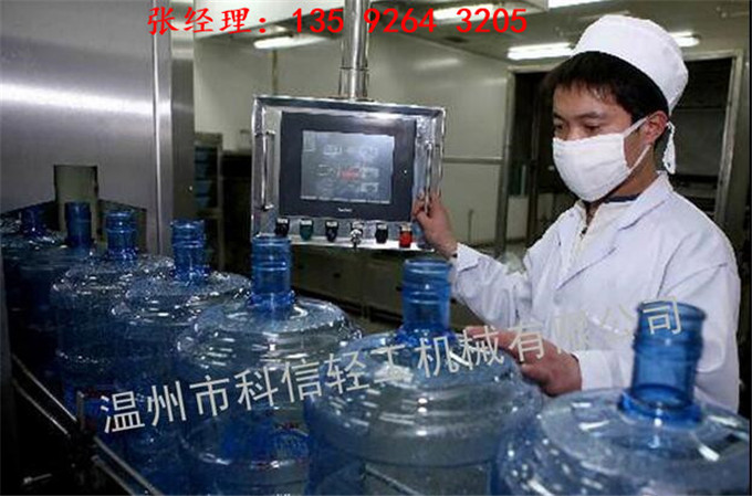 科信桶裝水生產線是專從供3加侖,5加侖桶裝飲用水生產之用。整機集沖洗,灌裝,封蓋功能于一體,是礦泉水,蒸餾水,純凈水生產的理想設備。整體采用優質不銹鋼,耐腐蝕,易清洗。主要電氣原件均采用SIEMENS,OMRON產品,氣路系統采用進口AirTAC產品。該機結構緊湊,占用廠房小,工作效率高且穩定可靠,自動化程度高,是機電氣三位一體的全自動桶裝設備。