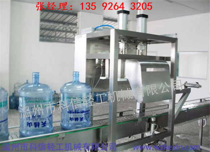 7.旋轉常壓灌裝壓蓋機:灌裝閥自主創新,常壓連續轉裝,液位準確,不噴水漲桶的優灌裝效果。采用新輪進出桶,進桶出桶少于3桶停止工作。飲用水灌裝,無溢水滴水,無二次污染。適合大中型設備灌裝。采用不銹鋼鏈條聯系壓蓋,再加上氣缸,雙重壓蓋。無蓋自動報警。